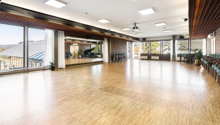 Rom nr. 1 – Bogstad er en sal på 134 m2 med parkettgulv, som egner seg til større møter, selskap, dans og liknende. Rommet kan møbleres med 100 stoler og med bord (120 x 80 cm) som kan trilles inn fra lager. Personantall gjelder under normale tilstander uten smitteverntiltak, og så er dette opp til ansvarlig arrangør å vurdere i hvert enkelt tilfelle. Projektor, musikkanlegg, mikrofonanlegg, duker og gulvstående whiteboard kan leies mot et tillegg, se gjerne priser nederst i prislisten. Ved leie av projektor eller musikkanlegg medbringer leietaker eget utstyr, og så er det tilkoblingsmulighet med minijack for musikkanlegg og HDMI for projektor.
